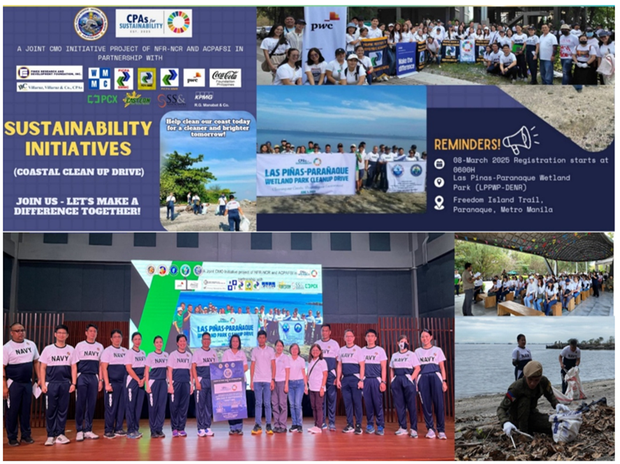 The Coastal Clean-Up Drive on March 8, 2025, at the Las Piñas–Parañaque Wetland Park, conducted in collaboration with the Philippine Navy under the leadership of PN Capt. Medardo Jun Deacosta;